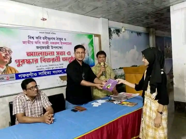 বিশ্ব কবি রবীন্দ্রনাথ ঠাকুর ও জাতীয় কবি কাজী নজরুল ইসলামের জম্ম বাষিকী উপলক্ষে গফরগাঁও সাহিত্য সংসদের উদোগে আলোচনা সভা ও পুরষ্কার বিতরনী অনুষ্ঠানের আয়োজন করা হয়।