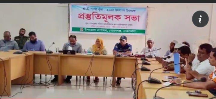 নেত্রকোনার মোহনগঞ্জে “শ্যামা পূজা” উপলক্ষে একটি প্রস্তুতিমূলক আলোচনা সভা অনুষ্ঠিত হয়েছে। আজ বুধবার ১৫ সেপ্টেম্বর দুপুর ১২ঘটিকায় মোহনগঞ্জ উপজেলা নির্বাহী অফিসার আমিনা খাতুনের সভাপতিত্বে মোহনগঞ্জ উপজেলা মাল্টিপারপাস কাম অডিটোরিয়াম হলরুমে এই প্রস্তুতিমূলক আলোচনা সভা অনুষ্ঠিত হয়।বিশেষভাবে উল্লেখ্য যে.-একমাত্র মোহনগঞ্জেই ঐতিহ্যগতভাবে হিন্দু ধর্মীয় শ্যামা পূজা বৃহত্তর ময়মনসিংহের মধ্যে ব্যাপক আলোক সজ্জা এবং আনন্দ ঘনময় পরিবেশে অনুষ্ঠিত হয়।
