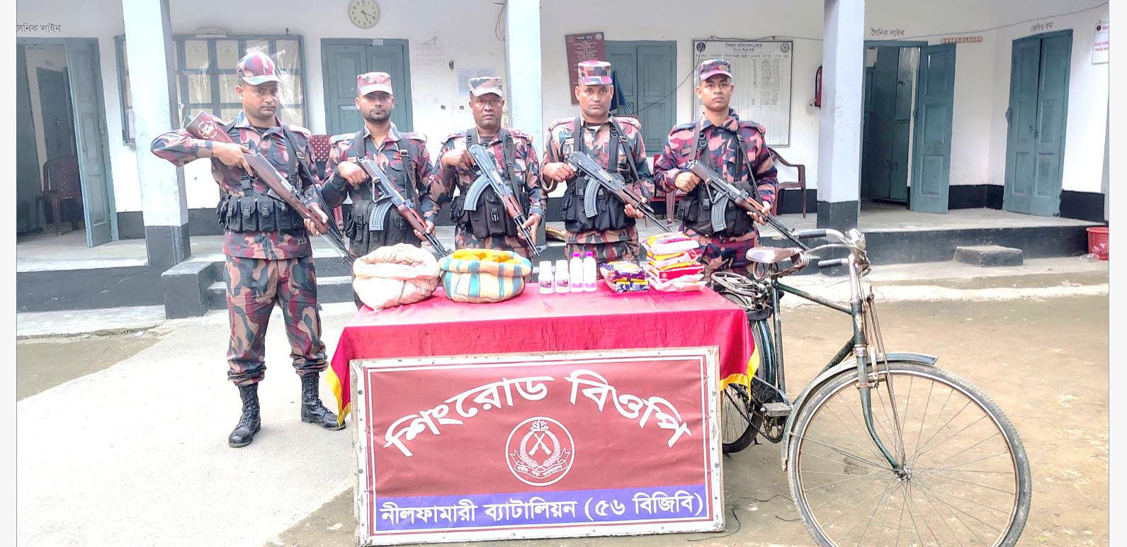 ঠাকুরগাঁও সেক্টরের অধীনস্থ নীলফামারী ব্যাটালিয়ন (৫৬ বিজিবি) সূত্র জানায়, চোরাচালান দমনে নিয়মিত অভিযানের অংশ হিসেবে শনিবার (২৪ জানুয়ারি) বিকেলে এ অভিযান পরিচালনা করা হয়। গোপন সংবাদের ভিত্তিতে অধিনায়ক, নীলফামারী ব্যাটালিয়ন (৫৬ বিজিবি) এর নির্দেশনায় শিংরোড বিওপির একটি টহল দল নায়েক মোঃ সাগর আলীর নেতৃত্বে পঞ্চগড় সীমান্তে অভিযান চালায়।