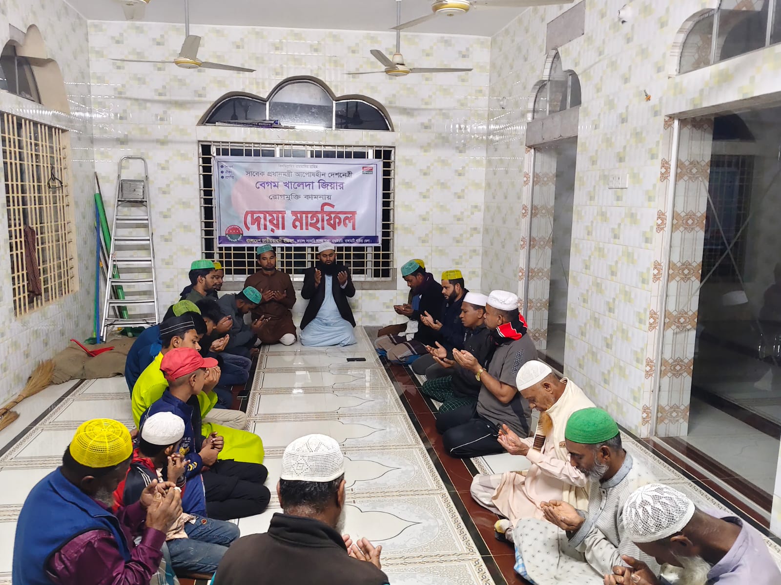 দোয়া পরিচালনা করেন মধ্যেম পাড়া জামে মসজিদের পেশ ইমাম। তিনি খালেদা জিয়ার আশু রোগমুক্তি ও দীর্ঘায়ু কামনা করে আল্লাহর দরবারে প্রার্থনা জানান