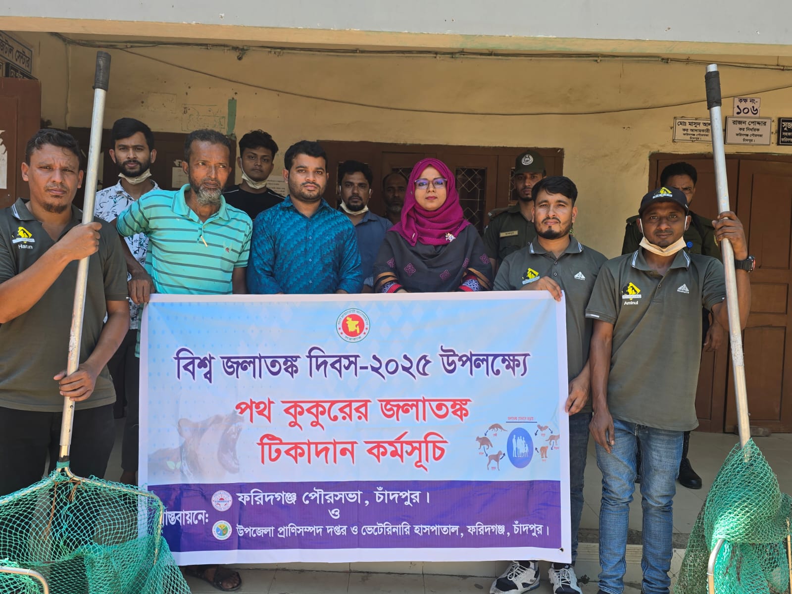 বিশ্ব জলাতঙ্ক দিবস উপলক্ষে চাঁদপুরের ফরিদগঞ্জ পৌরসভায় দুই দিন ব্যাপী পথ কুকুরকে জলাতঙ্ক টিকাদান কর্মসূচি বাস্তবায়ন করা হয়েছে।