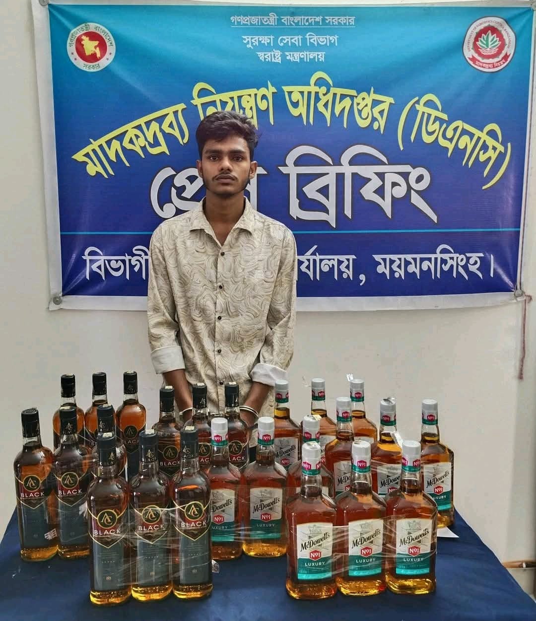 ময়মনসিংহে মাদকদ্রব্য নিয়ন্ত্রণ অধিদপ্তর কর্তৃক ভারতীয় মদসহ গ্রেফতার ০১