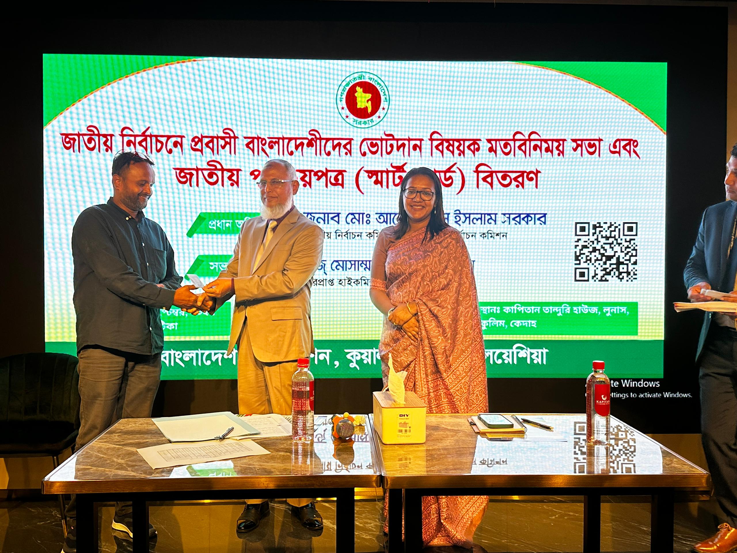 পরে নির্বাচন কমিশনার জাতীয় পরিচয় পত্র (স্মার্টকার্ড) বিতরণ করেন এবং উপস্থিত প্রবাসী ও সাংবাদিকদের বিভিন্ন প্রশ্নের উত্তর দেন। প্রশ্নোত্তর পর্বে নির্বাচন কমিশনার এবং ভারপ্রাপ্ত হাই কমিশনার প্রবাসীদের জাতীয় পরিচয়পত্র এবং পাসপোর্ট বিষয়ে তাদের নানাবিধ প্রশ্নের জবাব দেন।